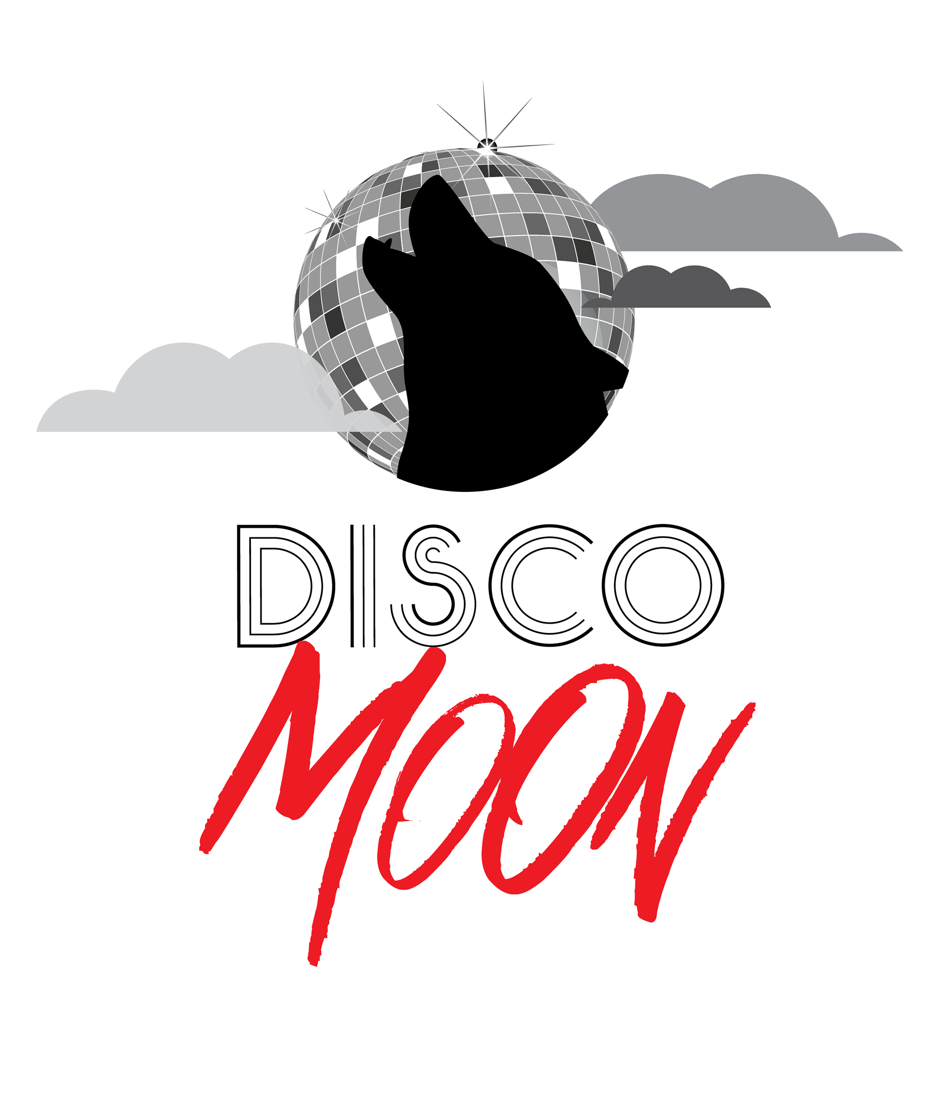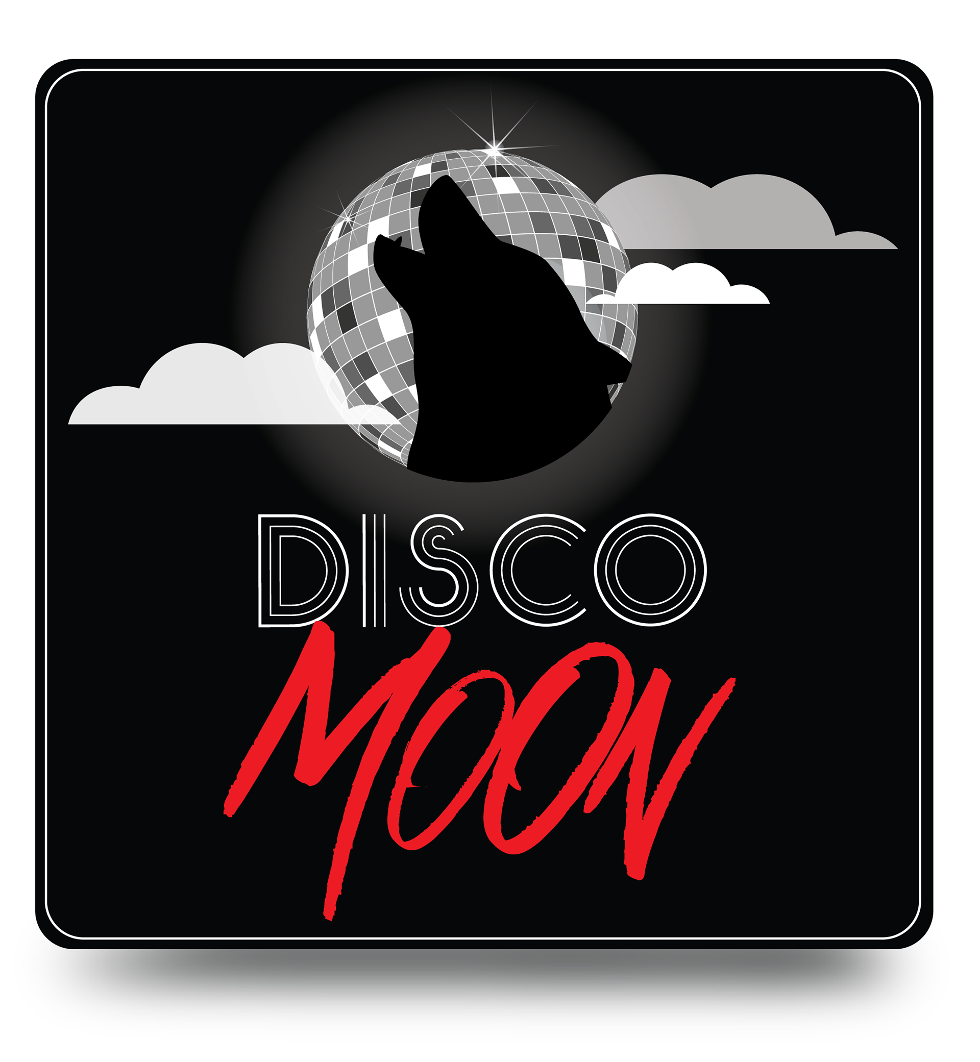 Logo pour le Band " Disco Moon " tete de loup devant une lune boule disco , ceci était la demande du client